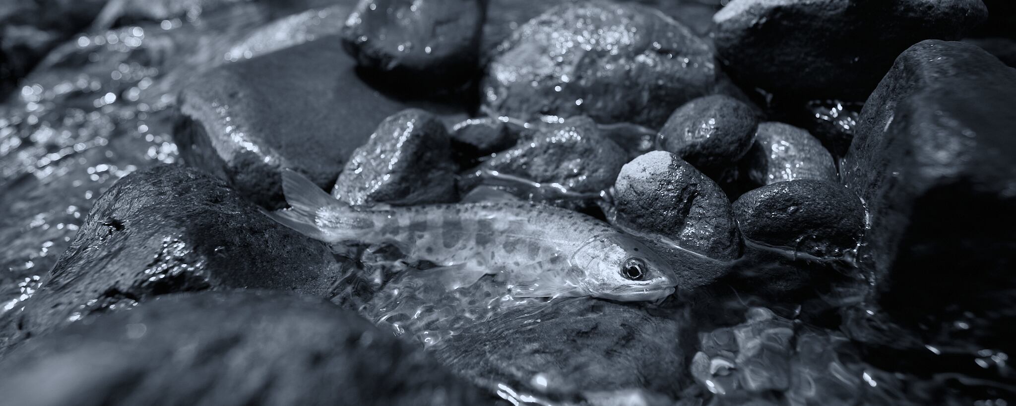 水の透明感が魚体の美しさを際立たせています。繊細なパーマークや滑らかな曲線は、まるで宝石のようです。